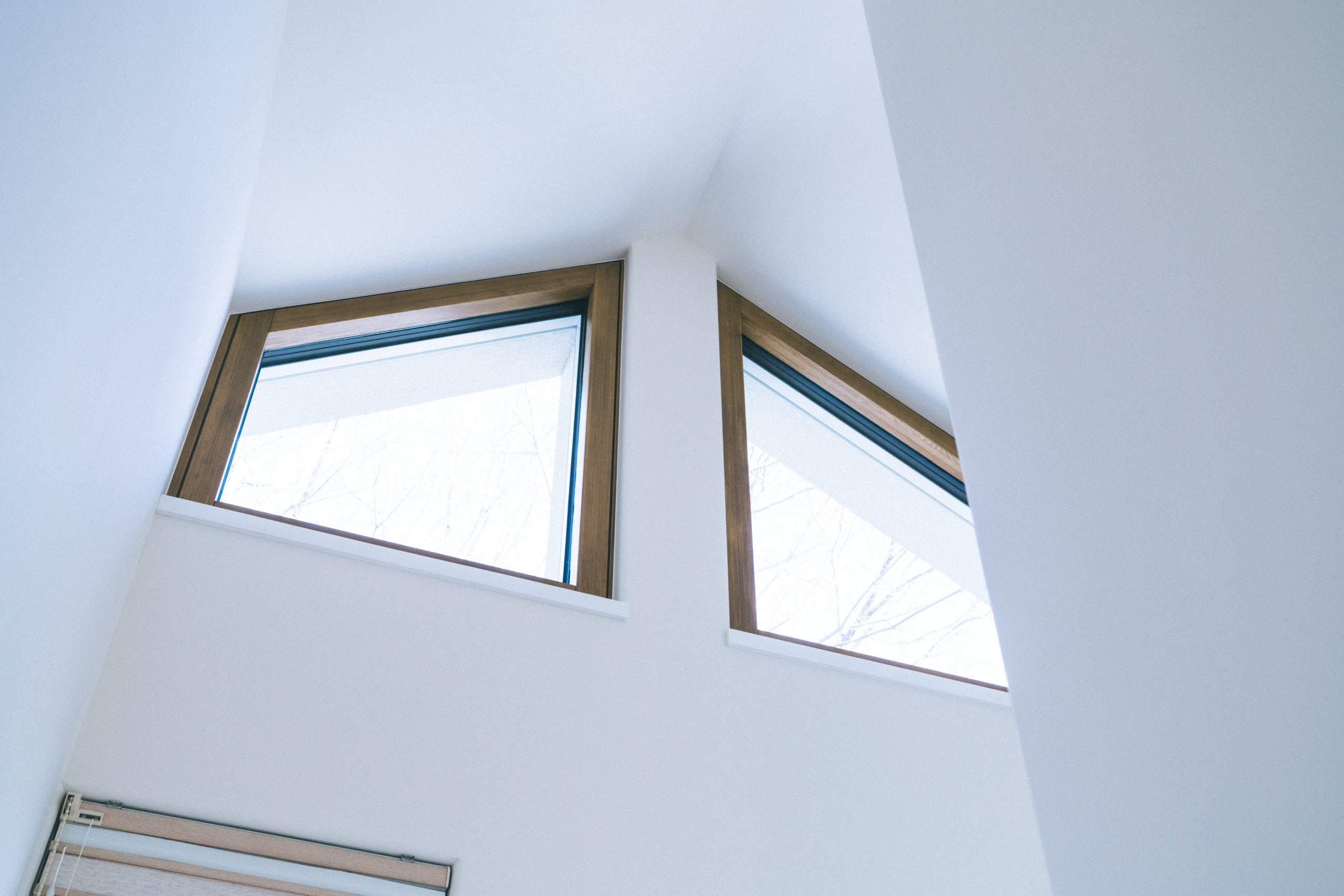 建物は風水を考慮した矩形の平面形状とし、吹抜けを設けて天井高さに変化をつけることで、シンプルな構成の中に空間の抑揚を生み出しています。